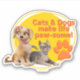 This captivating design from "Gracie & Pedro: Pets to the Rescue" features Gracie the golden puppy and Pedro the grey tabby cat. Gracie sports a pink bow and collar, while Pedro wears a blue collar, both set against a vivid yellow background with the slogan "Cats & Dogs make life paw-some!" prominently displayed. This charming and colourful image is available on a variety of products, including t-shirts, mugs, and posters, perfect for fans of the animated adventure.