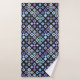 Cats-eye 60's 70's inspired geometric floral in groovy random combinations of purple, bright blue, turquoise, grey and white on black.