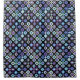 Cats-eye 60's 70's inspired geometric floral in groovy random combinations of purple, bright blue, turquoise, grey and white on black.
