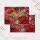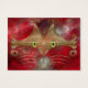 A stylised cat face made of glowing gold curves and curlicues, with wide green-gold eyes, against a red fractal background.