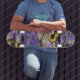 An original, mixed media, cat design created using collage, drawing and painting techniques. A great skateboard for cat lovers.