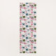 Cats faces muted warm green teal pink pattern yoga mat