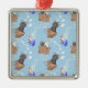 Cats in box and milk drops on blue metal tree decoration