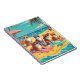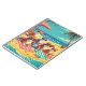 Notebook in five stylish cats relax on a sunny beach, lounging on striped towels under palm trees. They wear colourful sunglasses and straw hats, enjoying a tropical vacation, with a turquoise sea and bright blue sky behind them.