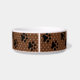 This is a heavy, durable bowl decorated with Tibbies of many colors, the perfect size for hungry/thirsty Tibs. The design is interesting and printing clear.