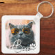 Cat's Modern Simple Cool Grunge Name and Photo Key Ring