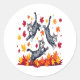 Cats Playing in Autumn Leaves Classic Round Sticker