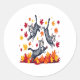 Cats Playing in Autumn Leaves Classic Round Sticker