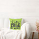 Trendy and lovely modern green pillow featuring the words "Cats rule the world", decorated with white whiskers, cat scratches, a tiny mouse, and a little paw.