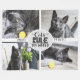 Lovely fleece blanket featuring four customisable photographs with the wording "Cats rule the world" in the middle, with black fun lettering decorated with whiskers, a tiny mouse, a paw, and cat scratches on the letter of the world RULE. The white band in the middle is personalizable with your cats' names (or delete the default text to leave it blank).