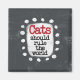 A cute typographic design that says "Cats Should Rule The World". It's black and red text on a white rectangle with funky, playful dots surrounding it sits on a solid, textured grey background.