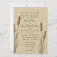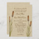 Cattail design with a warm burlap textured look printed invitation for your lake front or water front wedding. A favourite pond plant, this cattail design accented in yellow offers a charming and non traditional style.