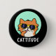 Cattitude Funny Cat Pun Dark BG 6 Cm Round Badge