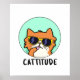 Cattitude Funny Cat Pun features a cool cat wearing sunglasses and licking his paw because he's got cat attitude. Funny pun gift for family and friends who love puns with attitude.