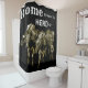 Cattle Herd Ranch house shower curtain. Beautiful colourized graphic herd of cattle strike a pose on this high contrast black shower curtain that bears the sentiment "Home is where the Herd is." Bold and beautiful this will be a blue ribbon winner in your ranch or farmhouse.