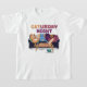 On a cosy sofa, four cats enjoy a relaxing evening with pizza and drinks, surrounded by a playful atmosphere. The words "CATURDAY NIGHT" are boldly displayed above them, emphasizing the laid-back vibe.