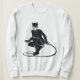 This striking graphic captures Catwoman in her element, showcasing her agility and stealth as she prepares for action. The illustration is rendered in bold black and white, emphasizing the sleekness of her costume and the dynamic movement of her pose. Catwoman is depicted crouching with a whip coiled at her side, her gaze focused and calculating. The splattered ink effect around her adds a sense of urgency and the chaotic environment in which she thrives. This artwork not only highlights Catwoman's iconic status as a skilled thief and anti-heroine but also her complex relationship with Gotham and its dark knight. It's a powerful portrayal of one of Batman's most enigmatic and formidable allies and adversaries.