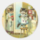 Vintage artwork of mother cat catching her little kitten up on a stool snitching a taste of the goodies in a jar.