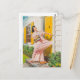 Funny PinUp card showing a black-haired PinUp Gilr got her skirt caughted in the door. It was a painting for an american magazine in April 1955, painted by Arthur Sarnoff (1912-2000)