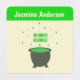 This awesome sheet of clothing labels features a graphic image of a grey cauldron. The cauldron is full to the top with a green potion brewed by a witch. The potion is bubbling out of the cauldron and has formed the word "bubble" which appears twice above the poisonous looking brew.
