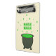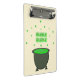 This awesome mini clipboard features a graphic image of a grey cauldron. The cauldron is full to the top with a green potion brewed by a witch. The potion is bubbling out of the cauldron and has formed the word "bubble" which appears twice above the poisonous looking brew.