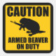 Caution Armed Beaver Square Sticker