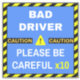 Caution Bad Driver Sign for Drivers - Blue label - A caution bad driver sticker is a type of bumper sticker that is used to warn other drivers of the poor driving skills of the person who owns the vehicle. Some people may use it as a joke, a prank, or a way to express their frustration with their own or someone else’s driving. Others may use it as a serious warning or a plea for patience from other drivers.