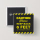 CAUTION KEEP BACK 6 FEET COVID19 15 CM SQUARE BADGE