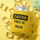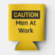CAUTION Men at Work Yellow and Black Can Cooler