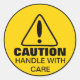 Caution Sign Handle With Care Sticker. Customisable yellow round stickers with fully customisable text "Caution" and "Handle With Care" and triangle with exclamation mark warning stickers sheet. This handle with care warning sticker is fully customisable, add your text and images!