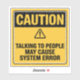 A bold and relatable caution sticker for anyone who finds social interactions just a bit too overwhelming. Featuring the phrase “TALKING TO PEOPLE MAY CAUSE SYSTEM ERROR,” this design mimics an official warning sign with high-contrast colours and a simple warning triangle icon. Perfect for laptops, water bottles, or desks, it’s a humourous way to express your need for quiet, space, or a mental reboot.
