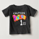 Vibrant typographical multi-coloured graphic t-shirt for young kids with plenty of energy, vigour and a vibrant and colourful personality. Reads Caution vibrant 1 year old. Exclusively designed by Sarah Trett.