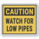 Watch For Low Pipes Sign