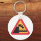 This design is a caution water ahead road sign. The sign shows a car driving off a cliff into water. This caution water ahead road sign design looks great on this Keychain