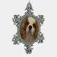 A blenheim Cavalier King Charles spaniel adorns this pewter snowflake ornament.  Won't this look good hanging on your Christmas tree this year?