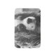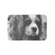Black and white, close up portrait photograph of a beautiful, soulful King Charles Spaniel.
