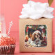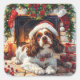 Celebrate the holidays with this charming sticker featuring a Cavalier King Charles Spaniel wearing a Santa hat, sitting by a cosy fireplace. Stockings, holly berries, glowing candles, and a wreath add warmth to the holiday scene. Clean and isolated, this sticker is perfect for adding festive charm to your holiday decor.