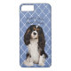 Cute cell phone case featuring an illustration of a Cavalier King Charles Spaniel. Customisable background colour and texts. Perfect gift for the dog lover or Cavalier King Charles Spaniel owner.