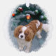 Beautiful cavalier king charles spaniel holiday art. The young cavalier is adorable aside a decorated woodland christmas tree.