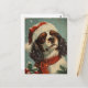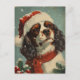 Capture the festive spirit with our Christmas card design featuring a charming Cavalier King Charles Spaniel adorned with a Santa hat. The joyful expression on the pup's face and the holiday-themed accessory create a heartwarming scene, perfect for spreading Christmas cheer to all your loved ones.