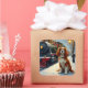 A nostalgic and heartwarming Christmas painting of a Cavalier King Charles Spaniel waiting at a snowy train station. Perfect for those who love vintage holiday charm and timeless festive art.