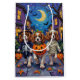 Adorable Cavalier King Charles Spaniels dressed in playful Halloween costumes carry pumpkin buckets while trick-or-treating under the moonlit sky. This festive design highlights the breed’s silky coat, gentle expression, and affectionate personality, perfectly capturing the spooky yet fun atmosphere of Halloween night. A charming celebration for dog lovers and Halloween fans alike.