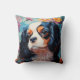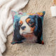 A close-up portrait of a tricolor Cavalier King Charles Spaniel puppy, rendered in a painterly style. The dog has a white, black and brown coat, with large, expressive brown eyes. It is surrounded by a profusion of colorfull flowers, creating a soft and romantic atmosphere. The dog's fur is depicted with meticulous detail, capturing the texture and flow of its long, silky hair. Perfect gift for cavie lovers.