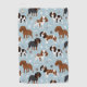 Cute Cavalier King Charles Spaniel with black, brown and white coats with scattered dog bones and pawprints pattern.