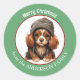 An image of an adorable little Cavalier King Charles Spaniel puppy dog wearing his winter hat is at the centre of this cute Holiday sticker. The image is framed in a circular green border which contains your custom text in white. Perfect for Christmas cards, correspondence, and gift packages.