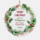 Here's a beautiful personalised ornament for anyone who loves a Cavalier King Charles Spaniel dog. The front watercolor image is of a tri colour spaniel wearing a red and white Santa Claus hat. The dog image is framed within a pretty holly and red berry Christmas wreath. The back of the ornament has the same wreath image with your custom text in green and red.