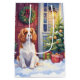 Brighten the season with this charming Christmas card featuring a Cavalier King Charles Spaniel on a festive snowy porch. A glowing lantern, holiday wreath, and decorated tree create a warm and cozy winter mood illustrated in soft watercolor style. The blank interior offers plenty of space for personal greetings, making it perfect for dog lovers, holiday correspondence, and thoughtful gifting.