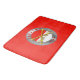 This rug is just as pictured! Vibrant Red and very soft material, nice to step in out of the tub!  Matches my set of accessories and  shower curtain! A must have to add some whimsy to your bathroom! Very nice, vibrant and clear print! Beautiful!