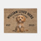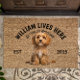 Cavapoo Personalised Dog lover welcome doormat. This welcome mat can be personalised with your dog’s name, the slogan can also be changed or you could use a picture of your own dog (make sure it's transparent). Text reads: William lives here…. All treats welcome