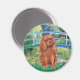 Lily Pond Bridge by Claude Monet, adapted to include a ruby Cavalier King Charles Spaniel. With varying hues of green and blue, this serene scene is one of Monet's most popular paintings.